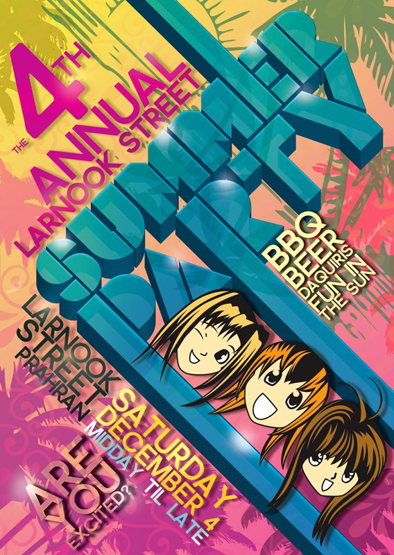 Summer Party was a house party that was always more than just a house party. It was a hightly anticipated event and the design aimed to not only reflect that, but also increase the anticipation. An exercise in branding for its own sake