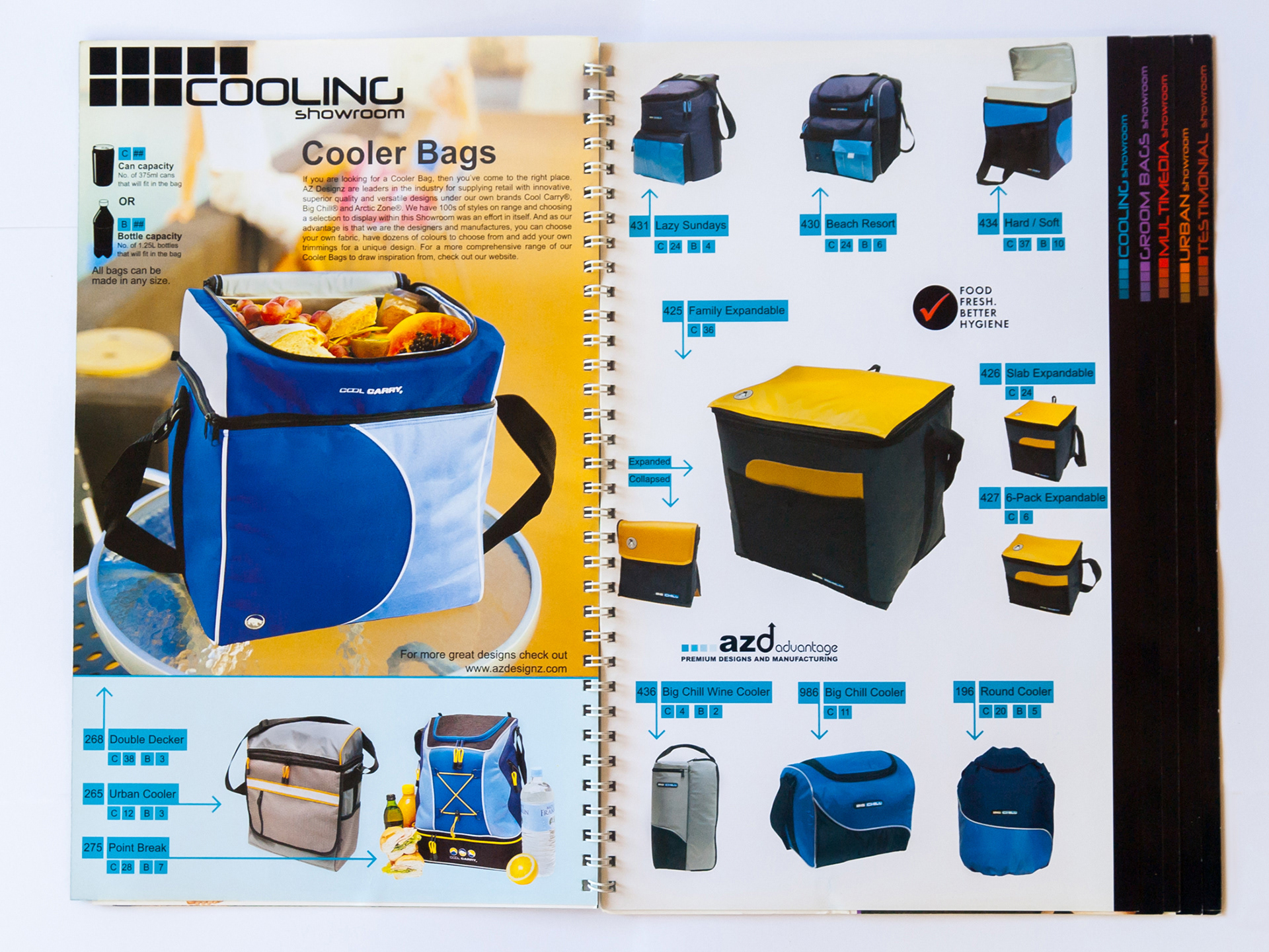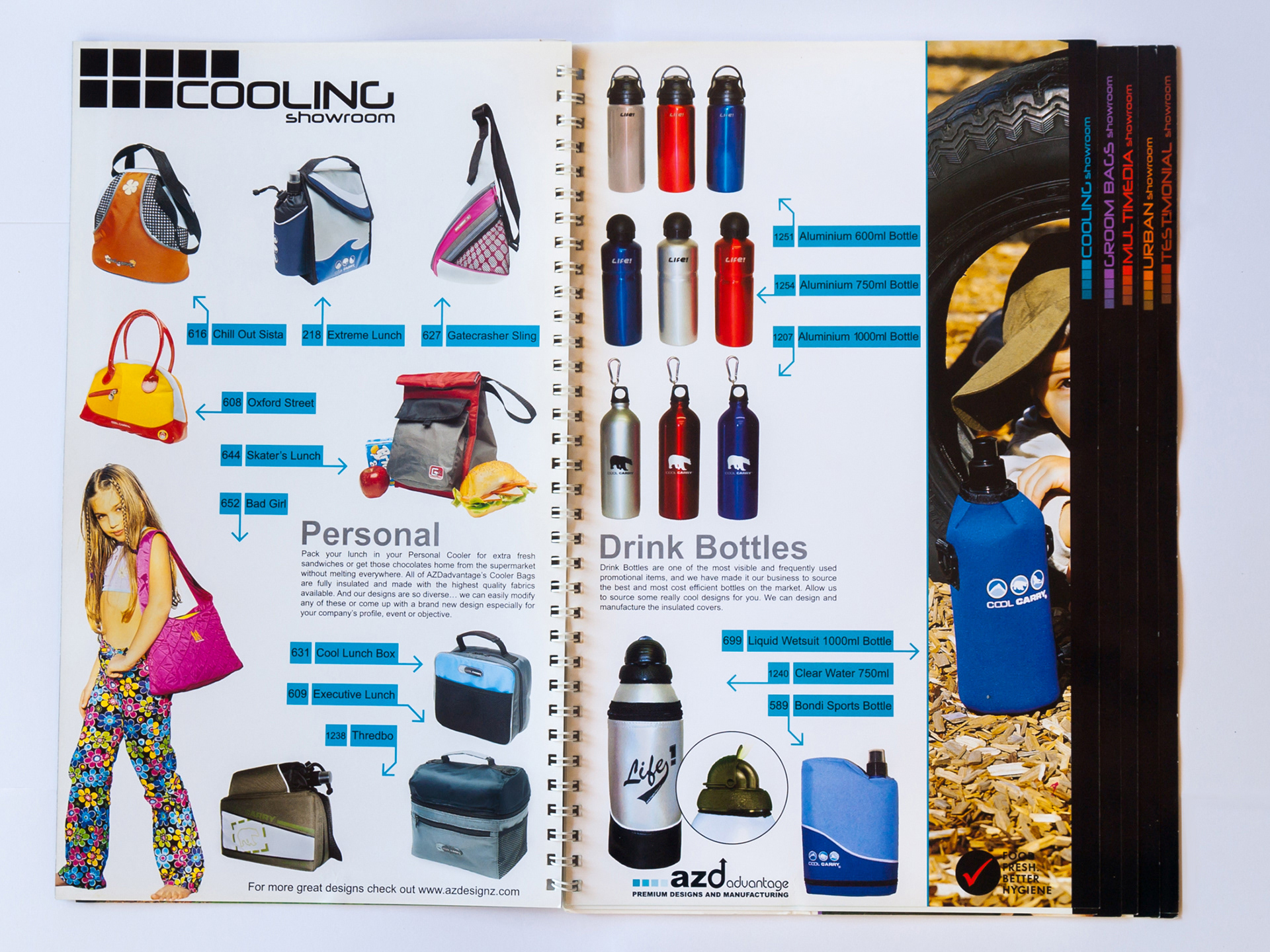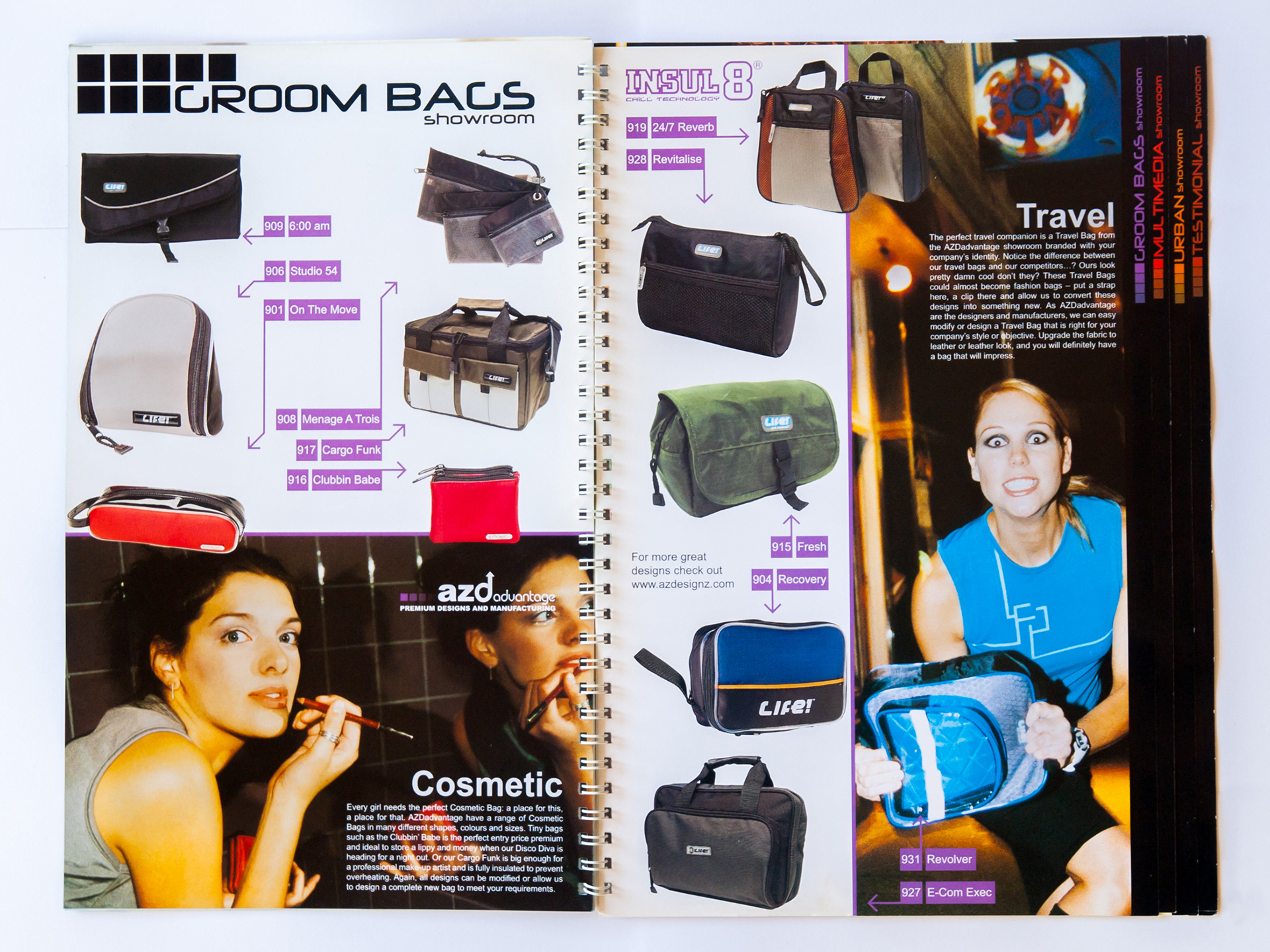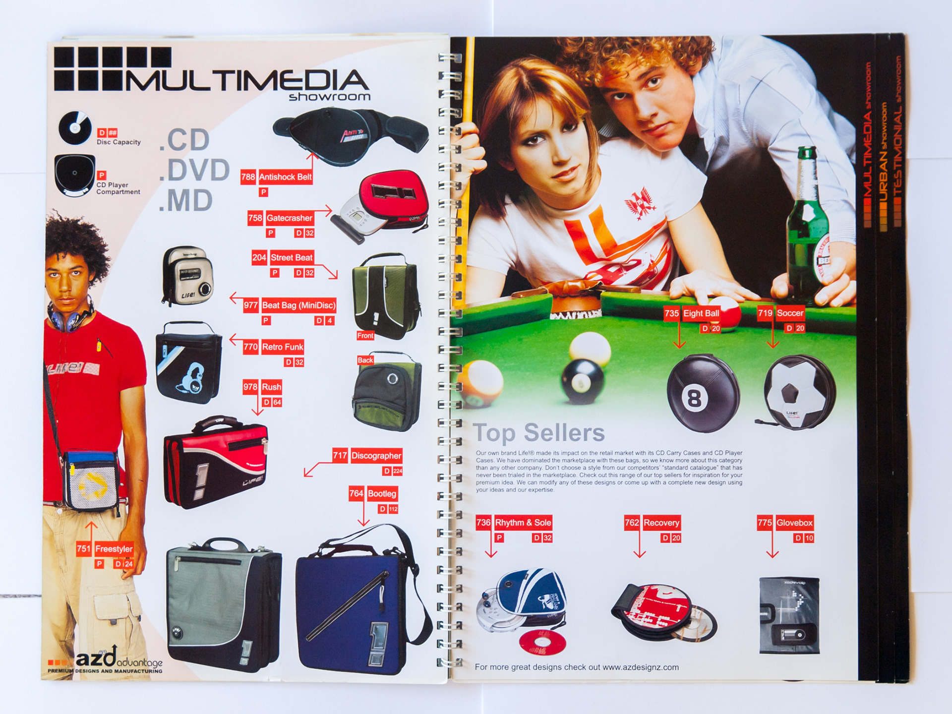 A 2003 corporate catalogue for licensed, branded products. It was important to reflect the fun vibe of AZ Designs as well as the versatility of their products in a variety of markets.